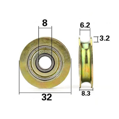 | 8mm Bore Bearing with 32mm Round Steel wire/Cable Track Pulley Roller Bearing 8mm x 32mm x 8.3mm |