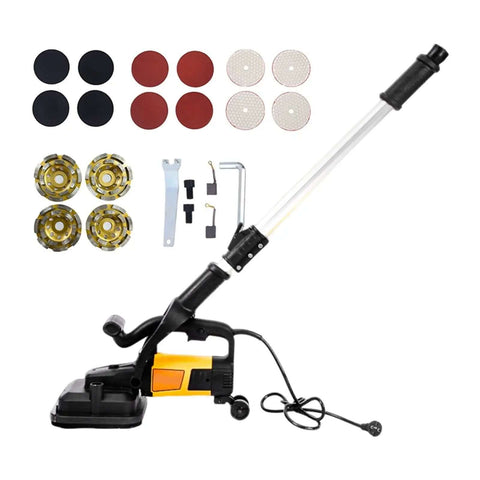✔️ 3800W motor with adjustable speeds and extendable rod, ideal for grinding and polishing concrete, marble, or stone floors in industrial or home settings, at 110V power supply
