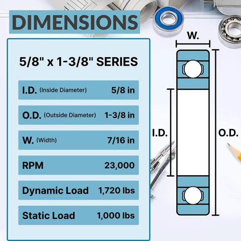 ✅ 5/8 x 1-3/8 inch flanged ball bearing✅ Rubber seals on both sides for dirt exclusion