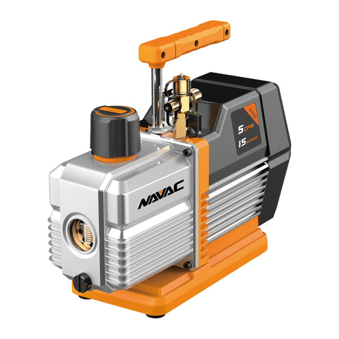Pro Grade Navac NP5DP HVAC Vacuum Pump With Dual Stage AC Motor, 5 CFM Flow, 15 Microns Vacuum, A C Vacuum Pump Kit For Evacuating HVAC Equipment For Pros And Techs, Pro Series, Includes Check Valve And Essential Accessories