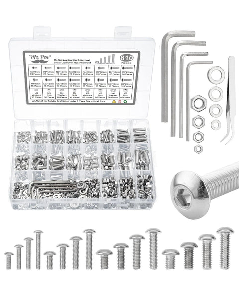 Stainless Steel Fastener Kit With 810 Pieces Nuts Bolts And Washers For DIY Projects M3 M4 M5 M6 Button Head Socket Cap Screws Assorted Hex Bolts Nuts And Washers For Home Auto And Outdoor Use Built To Last Durable Rust Resistant Hardware Set