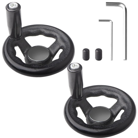Lote de dos volantes redondos de tres radios, Inch 10 Inch y Inch 1,2 Inch , con pomo giratorio, para fresadoras, taladradoras, tornos, manivelas y otra maquinaria. Fabricados en plástico resistente y aislante, diseñados para ofrecer un agarre seguro, una rotación suave y una larga duración.