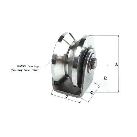 This 2" inch V-groove sliding door roller is made from corrosion-resistant 304 stainless steel and features a built-in 6000RS ball bearing for quiet, low-friction movement. Ideal for V-track systems used in sliding doors, gates, or industrial tracks where durability and smooth rolling are essential.