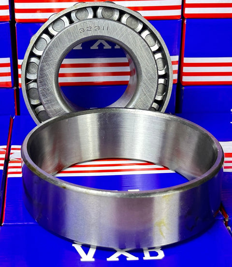 32311 Tapered Roller Wheel Bearing, designed to handle both radial and axial loads in one direction simultaneously (includes cone and cup), made from durable 52100 alloy steel, commonly known as chrome steel.