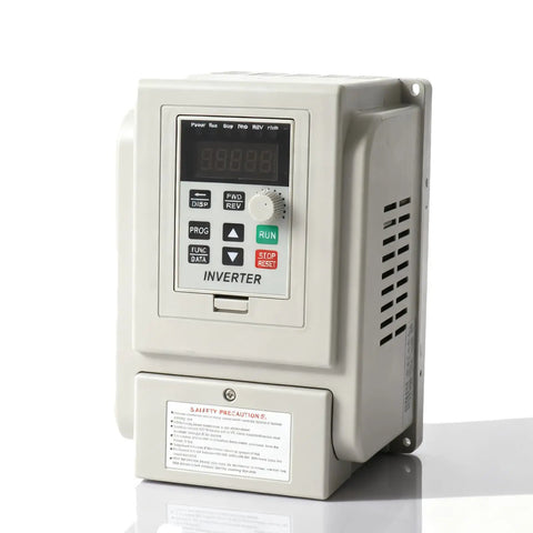 This heavy-duty variable frequency drive converts single-phase input to reliable three-phase output, ideal for driving conveyors, pumps, and machine tools in manufacturing settings.