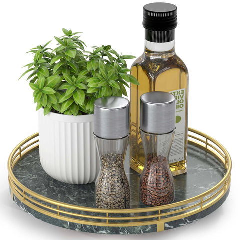 This marble lazy susan is a compact tabletop rotating tray made from natural green marble, designed to add a luxury touch while keeping items easy to reach. It works great on dining tables, kitchen countertops, bars, and vanities where smooth rotation and visual appeal both matter.