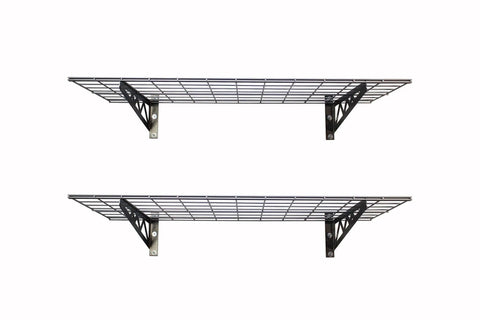 Garage Wall Shelf Two Pack In White Or Hammertone Finish Steel Wall Mounted Shelves With Bike Hooks Three Size Options Including 18x36 Inch Powder Coated Finish 500 Lb Weight Capacity For Overhead And Hanging Storage