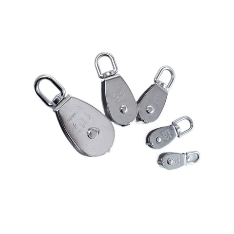 This handy pulley helps lift heavyweight loads with less effort and keeps lines tidy. - handy for rigging, lifting, and hoisting in boats, factories, and farms - corrosion-resistant 304 stainless steel stands up to outdoor and damp environments - 360-degree rotating wheel provides smooth rope guidance and control - ideal for fishing nets, blocks, and overhead suspensions