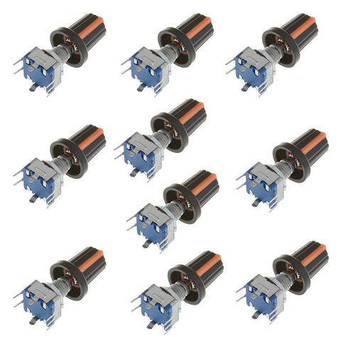10 Pack 20mm 5 Pin 360 Degree Rotary Encoder Code Switch Digital Potentiometer With Push Button And Orange Knob Cap DIY Kit For Arduino And Raspberry Pi Makers And Hobbyists For Prototyping
