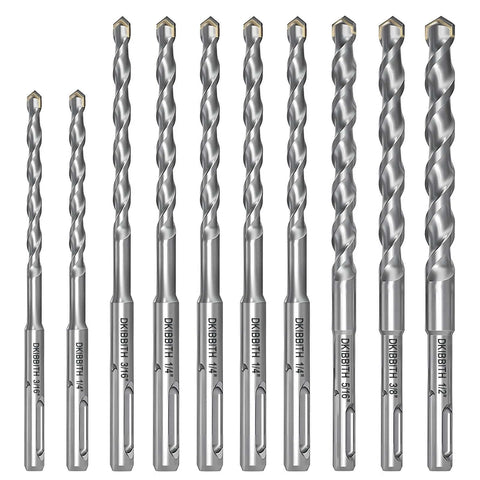 This 10-piece SDS Plus drill bit set is designed for rotary hammer drills, delivering carbide-tipped precision for drilling into hard materials. Use it for concrete, cement, brick, porcelain tiles, ceramic, stone, and other masonry projects. It's a handy upgrade for DIYers and pros alike.
