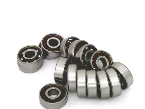 100 inline/Rollerblade/Skate Bearing Chrome Steel Open Ball bearing with Nylon Cage. The Nylon material has low friction and less weight, less friction & less weight means higher speeds. Bearings are made from high-strength Chrome Steel.