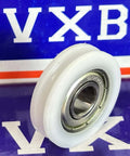 This U-groove track roller features a white round nylon pulley paired with a smooth-rolling steel ball bearing insert. Designed for track-guided motion, it's perfect for sliding doors, automated gates, and light conveyor systems where smooth, guided movement is essential.