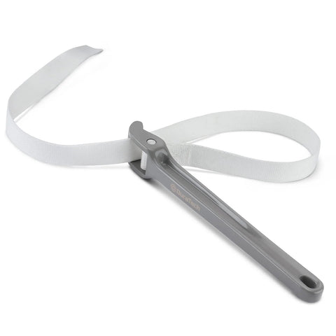 This strap wrench is a lightweight, adjustable tool that grips round or irregular items without scratching surfaces. It's commonly used in automotive, plumbing, and maintenance to loosen or tighten pipes, filters, and fittings in tight spaces.