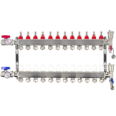 ✔️ 12-loop stainless manifold with 1/2 in PEX adapters, up to 1.4 GPM flow