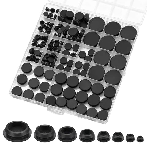 125 Piece Black Silicone Rubber Plugs Set For Round Holes In Furniture And Car Panels Eight Sizes From One Inch To Five Sixteenths Inch Premium Wear Resistant Temperature Resistant Auto Lock Buckle Design Keeps Plugs Secure For DIY Projects