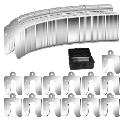 130-Piece 3-Inch By 3-Inch Slotted Stainless Steel Shim Set With Durable Storage Box, 13 Precise Thicknesses From 0.001 To 0.125 Inches, Machinist Leveling Shims For Tool Calibration And Machine Alignment, Pro Grade Heavy-Duty Shim Kit For Workshop Use