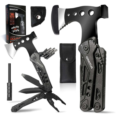16 In 1 Camping Multitool With Axe Hammer Pliers Saw Knife Wire Cutter And Screwdrivers, Survival Gear For Hiking And Outdoors, Ideal Gift For Men Dad Him, Includes Whistle Flint Fire Starter Bottle Opener And Nylon Carrying Case