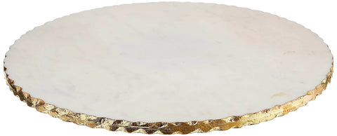 16 Inch White Marble Lazy Susan with Gold Edge