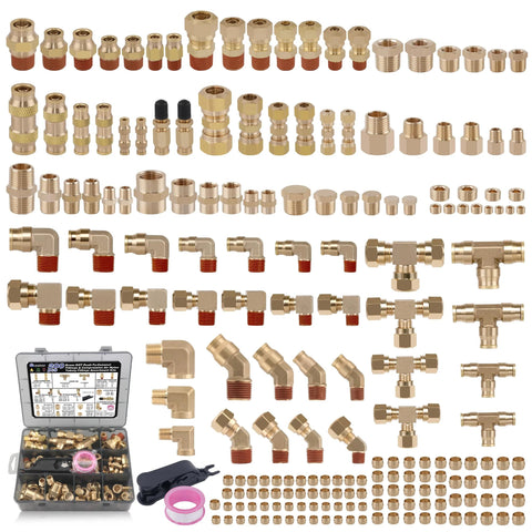 This 200-piece brass DOT air brake line fittings and nylon tube compression kit is built for durable, leak-free connections in air hose systems. It's ideal for automotive brake lines, shop air setups, and fleet maintenance where quick-connect and compression fittings are required.