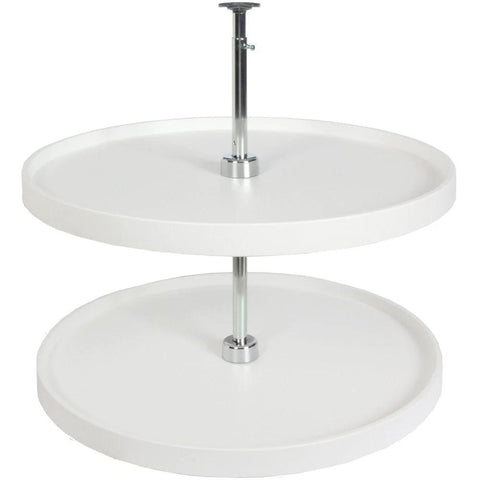 28 Inch Full Round Polymer Lazy Susan Cabinet Organizer In White With 360 Degree Rotation Durable Double Wall Rim And Reinforcing Ribs Includes Shelves Post And Hardware For Easy Cabinet Installation And Efficient Corner Storage
