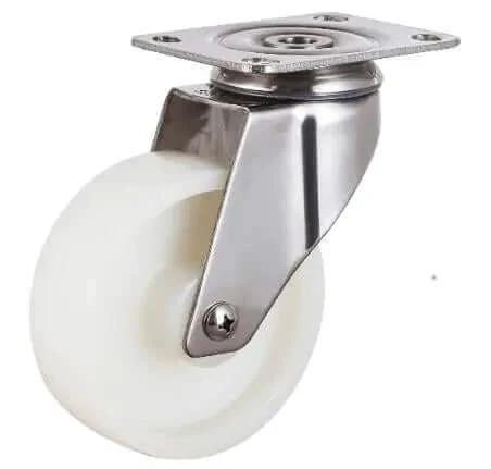 💡 What is a stainless steel nylon swivel caster used for? This handy, general-purpose caster handles everyday light-duty tasks and is a good fit for many consumer-grade carts and furniture. - Handy for light-duty furniture, carts, workstations - Ideal for clean environments where rust resistance matters - Nylon wheel reduces noise and floor wear on hard surfaces - 360-degree swivel plate makes tight-space steering easy