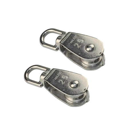 This two-pulley set features a 32mm single sheave and a fixed open-block design, built from 304 stainless steel for anti-rust performance. Handy for canoes, boats, kayaks, docks, and light-duty rigging where smooth rope guidance and reliable load handling matter.