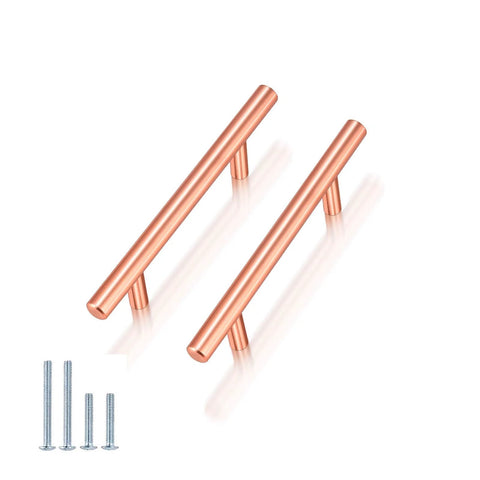 3 Inch Cabinet Handles Solid Stainless Steel Drawer Pulls Brushed Rose Gold Finish 5 Pack Euro T Bar Style 10mm Diameter Tube 76mm Center To Center 127mm Overall Length Modern Hardware For Cabinets Wardrobes Dressers