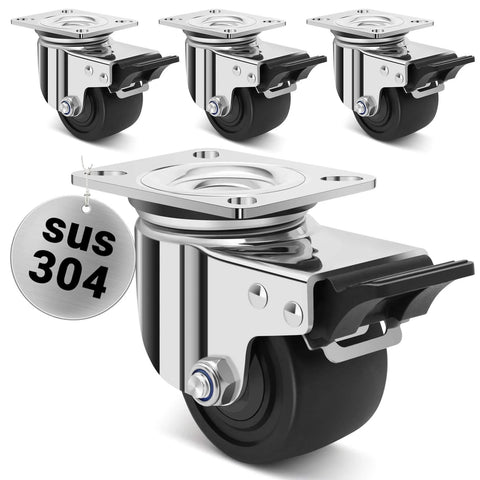 3 Inch Heavy Duty Stainless Steel Low Profile Caster Wheels