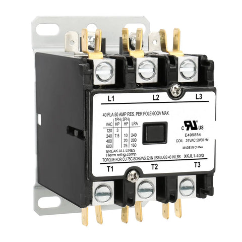 ✔️ 3P 40A FLA, 50A RES, 240A LRA; 24V coil, 50/60Hz
