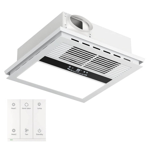 This ceiling-mounted 4-in-1 bathroom fixture combines an exhaust fan, heater, LED lighting, and fresh-air venting in one unit. It's ideal for master baths, guest bathrooms, and remodeling projects where you want fast warmth, reliable ventilation, and bright daytime light from a single installation. Install options include plug-in or hardwired connections for flexible setup.