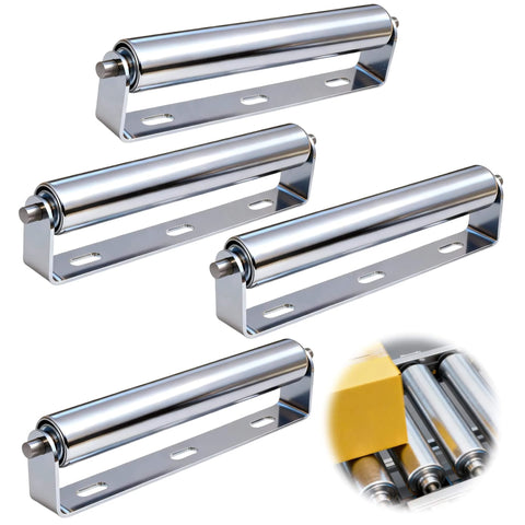 4 Sets Conveyor Rollers 10" Length 1.5" Diameter Galvanized Steel Long Roller with Bracket Set for