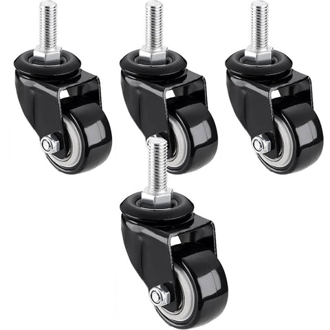 This is a 4-pack of compact swivel caster wheels designed for light to medium duty furniture and display equipment. Built with quiet polyurethane wheels and a threaded stem mount, these casters are a handy solution for adding smooth mobility with secure locking in home, office, or retail setups.