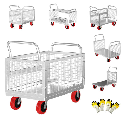 5IN1 Heavy Duty Platform Truck with Cage 44x28 Hand Truck Extra Large Version, 2200lbs Capacity Basket Cart with Wheels, Push Dolly with 6” Swivel Casters, Versatile Flatbed