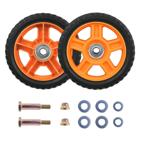 6 Inch Lawn Mower Wheels for Push Mowers, Plastic PU Wheels with Bolts & Nuts, 6x1-1/2 Size, 1/2 Inch Bore, Fits Lawn Mowers, Carts, Wheelbarrows, Pressure Washers & More, 2 Pack