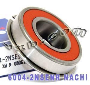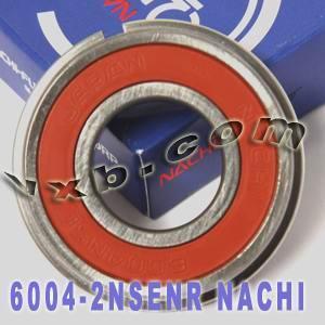 6004-2NSENR Nachi Bearing, Made in Japan, with a Snap Ring, the 6004-2NSENR inner diameter is 20mm, the 6004-2NSENR outer diameter is 42mm, 6004-2NSENR width is 12mm.