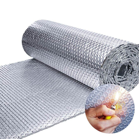The 6mm thick reflective insulation sheet is a radiant barrier built from double sided aluminum foil and bubble layers. It helps block heat transfer, making winter warmer and summer cooler. This product is handy for windows, walls, attics, garages, RVs, and around fireplaces, and it comes folded with 70 adhesive pads for secure mounting.