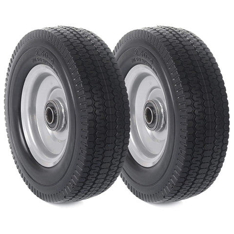 8 Inch Solid Wheel Replacement 2 Pack with 2.50-4 Flat Free Tire and Wheel, Offset Hub 2.2 Inch, 5/8 and 3/4 Inch Bearings Included, Heavy Duty PU Run Flat Wheels for Hand Trucks, Generators and Goril