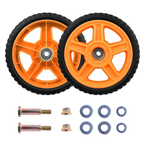 8 Inch Lawn Mower Wheels for Push Mowers, Plastic PU Wheels with Bolts & Nuts, 8x1-3/4 Size, 1/2 Inch Bore, Fits Lawn Mowers, Carts, Wheelbarrows, Pressure Washers & More, 2 Pack