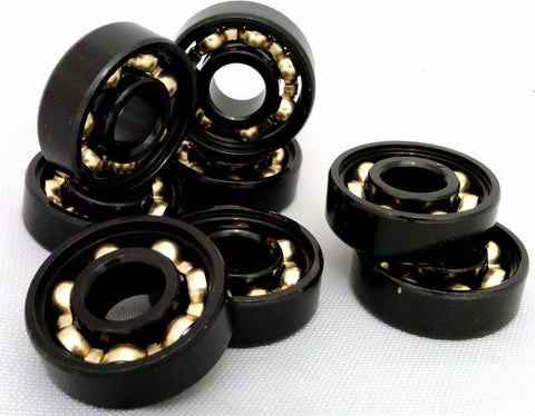 8-Pack Skateboard Black Open Bearings - Bronze Cage 8x22x7mm