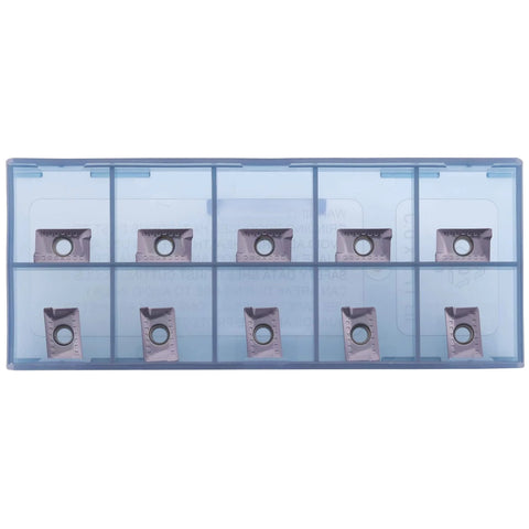These indexable milling inserts are carbide tools used in CNC milling to create square shoulder features and ensure precise metal removal. They come in a 10-pack with a grey PVD nanocomposite coating that delivers high temperature stability and low friction for smooth cuts in stainless steel, carbon steel, and heat resistant alloys.