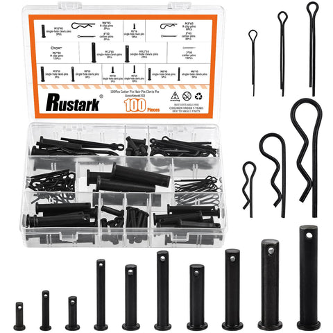 This 100-piece pin fastener kit brings together cotter pins, hair pins, R clips, and clevis pins in 16 popular sizes (M2-M12) to cover most automotive and mechanical projects. Each piece is zinc-plated black for corrosion resistance and long life, and the clear storage box keeps everything organized for quick selection in workshops, garages, or home workbenches.