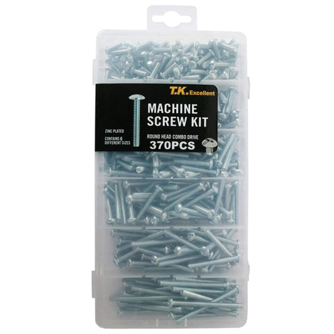 This 370-piece screw kit delivers assorted machine screws with Phillips drive, ideal for heavy-duty fixtures, electrical outlets, panels, and appliances. The six standard sizes (8#×1/2 to 8#×2) keep fasteners organized in compartmented plastic boxes for quick access.