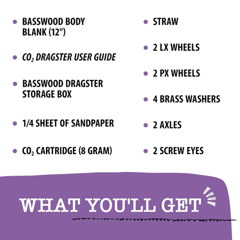Basswood CO2 Dragster Kit for STEM Education, Single Set, CTSO Competition Specs Compliant, Perfect for Grades 6 12 Class Projects, Hands On Engineering, Aerodynamics and Science Learning in the Classroom