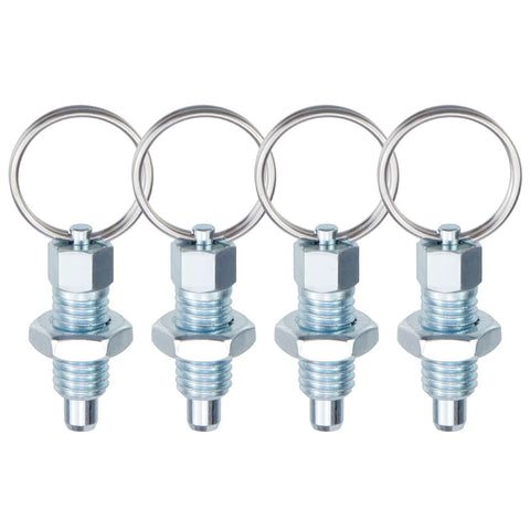 Beefy Heavy-Duty Stainless Steel Spring Plunger Pins 4-Piece Set M10-1.5-6 With Pull Ring, Locking Index Plungers For Machinery And Equipment, Built-To-Last Quick-Release Alignment, Industrial Grade