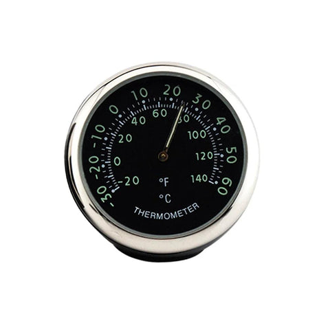 This compact car dashboard thermometer shows cabin temperature and glows at night for easy reading. It attaches with double-sided tape on the dash, console, or other surfaces, turning this small gauge into a handy car accessory.