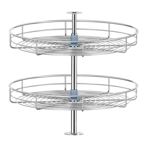 ✅ Full circle chrome lazy susan with two-tier rotating shelves✅ Dimensions: 21-1/4W x 21-1/4D x 22H