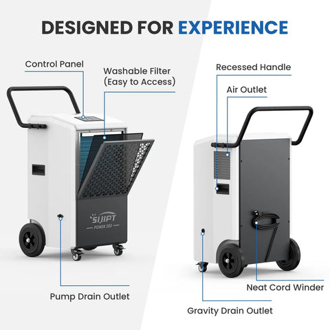 Commercial Dehumidifier With Pump For Large Basements, Commercial Spaces, And Industrial Areas, 260 Pint Capacity, Auto Defrost, Ideal For Flood Restoration Up To 8,500 Sq Ft