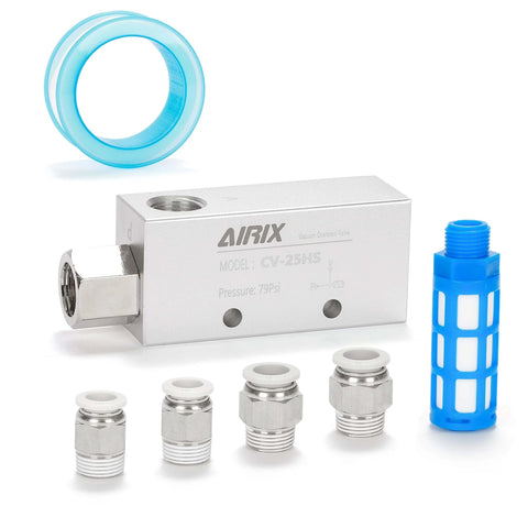 ✅ Bonus silencer filter reduces noise and blocks debris; two quick-connect fittings included (PC10-03 for 10 mm / 0.39 in and PC12-03 for 12 mm / 0.47 in)