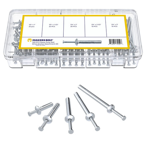 Concrete Anchor Set: 100-Piece Hammer-Drive Assortment