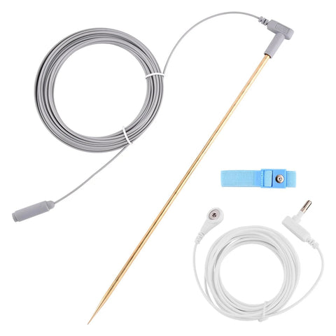 This grounding rod kit provides a reliable earth connection for electrical safety and personal grounding. It's designed for easy use with grounding mats, sheets, pads, pillows, blankets, and other earthing accessories, even from upper floors where outlets may not be grounded.